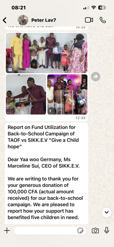 Jede Spende hat dazu beigetragen, Waisenkindern in Kumbo Schulbildung, Essen und medizinische Versorgung zu ermöglichen – mitten in einem Gebiet, das vom Krieg gezeichnet ist.