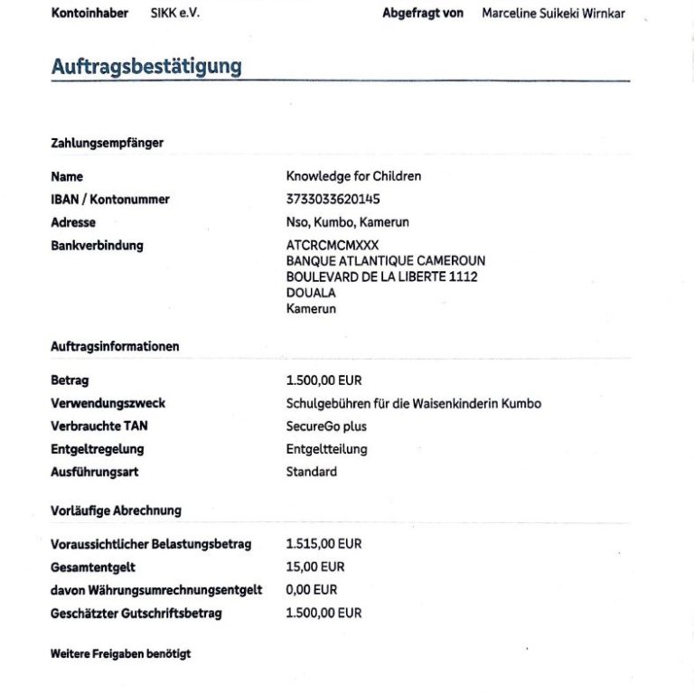 Unsere letzte überweisung an Knowledge for children in Kumbo
